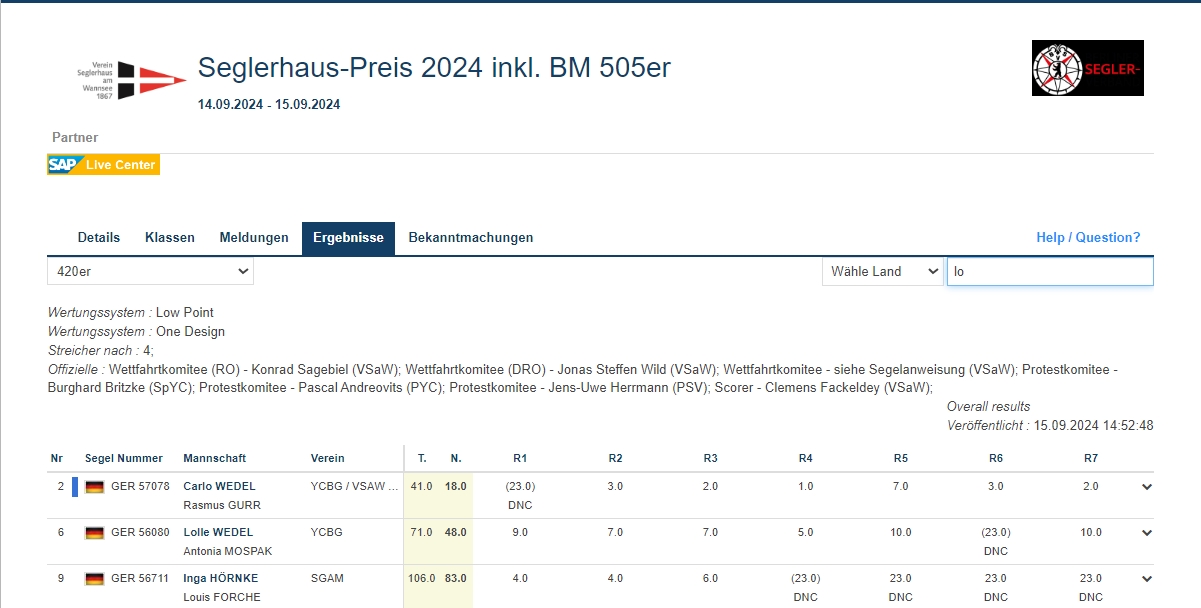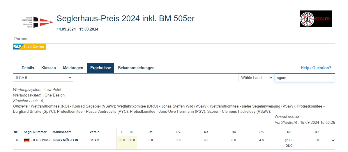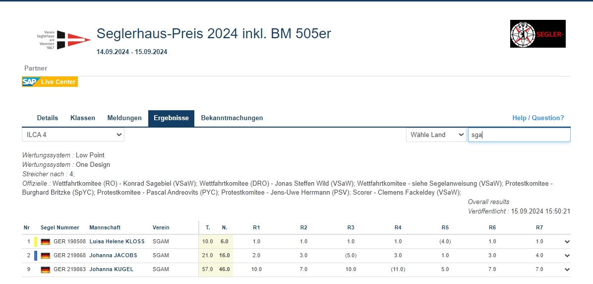 Julius Mögelin im ILCA 6 auf Rang 6, Georg Graw auf 16. Die 420er Crew um Lolle Wedel schaffte Rang 6. Inga Hörnke und Louis Forche starteten eine hervorragende Serie, mussten verletzungsbedingt ab R4 ausscheiden.